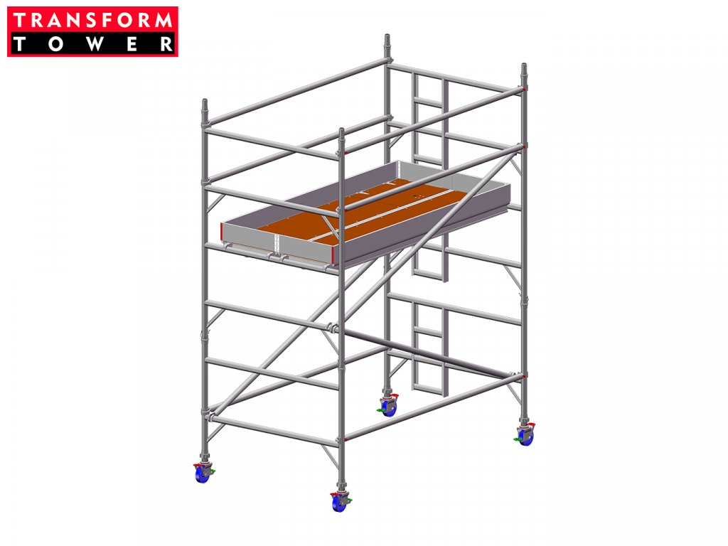 Profesionální hliníkové lešení Transform Tower v sobě dokonale skloubí poměr ceny a kvality. Jedná se o robustní, ale zároveň velmi lehkou konstrukci zajišťující vysokou odolnost jednotlivých dílů. Síla stěny trubek u hliníkového lešení Transform Tower je 1,9 mm, což je ve srovnání s konkurencí o cca 20 % více. Veškeré části rámů jsou svařované. Hlavice vzpěr jsou lisované, vyztužené a odolné vůči prasknutí. Transform Tower je plně kompatibilní se systémy BOSS, EIGER a LEWIS a není zapotřebí spodního stabilizačního rámu. Systém lešení má méně komponentů, jeho sestavení je díky bočním stabilizátorům velmi rychlé, snadné a lze jej postavit přímo ke zdi bez odstupu. Jednotlivé věže obsahují výškově nastavitelná kolečka, díky kterým je můžete snadno přemisťovat. Lešení je testováno a certifikováno v souladu s platnou legislativou podle ČSN EN 1004-1, ČSN EN 1004-2.
