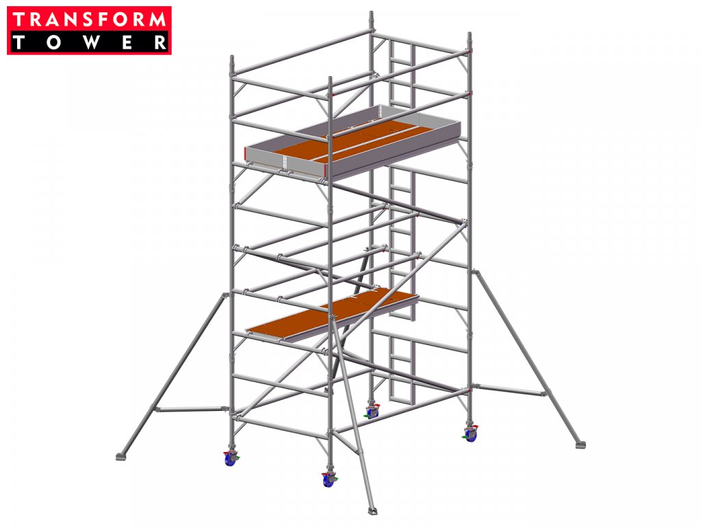 Profesionální hliníkové lešení Transform Tower v sobě dokonale skloubí poměr ceny a kvality. Jedná se o robustní, ale zároveň velmi lehkou konstrukci zajišťující vysokou odolnost jednotlivých dílů. Síla stěny trubek u hliníkového lešení Transform Tower je 1,9 mm, což je ve srovnání s konkurencí o cca 20 % více. Veškeré části rámů jsou svařované. Hlavice vzpěr jsou lisované, vyztužené a odolné vůči prasknutí. Transform Tower je plně kompatibilní se systémy BOSS, EIGER a LEWIS a není zapotřebí spodního stabilizačního rámu. Systém lešení má méně komponentů, jeho sestavení je díky bočním stabilizátorům velmi rychlé, snadné a lze jej postavit přímo ke zdi bez odstupu. Jednotlivé věže obsahují výškově nastavitelná kolečka, díky kterým je můžete snadno přemisťovat. Lešení je testováno a certifikováno v souladu s platnou legislativou podle ČSN EN 1004-1, ČSN EN 1004-2.